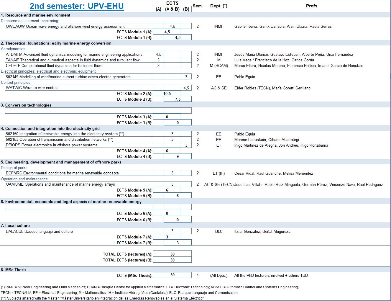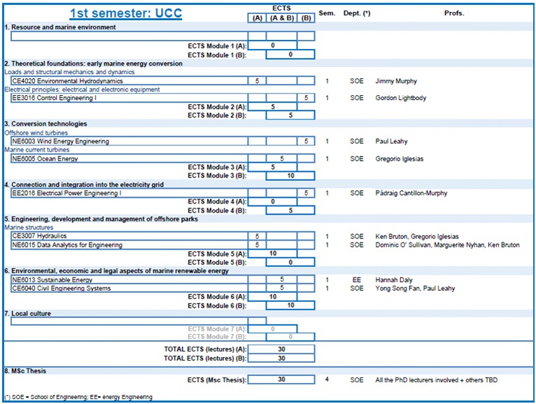 Subjects offered by all the universities are detailed below, including the lecturers involved in chronological order, such as: