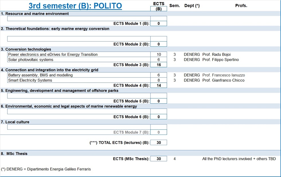 - 3rd semester: Potitecnico di Torino (specialization B).