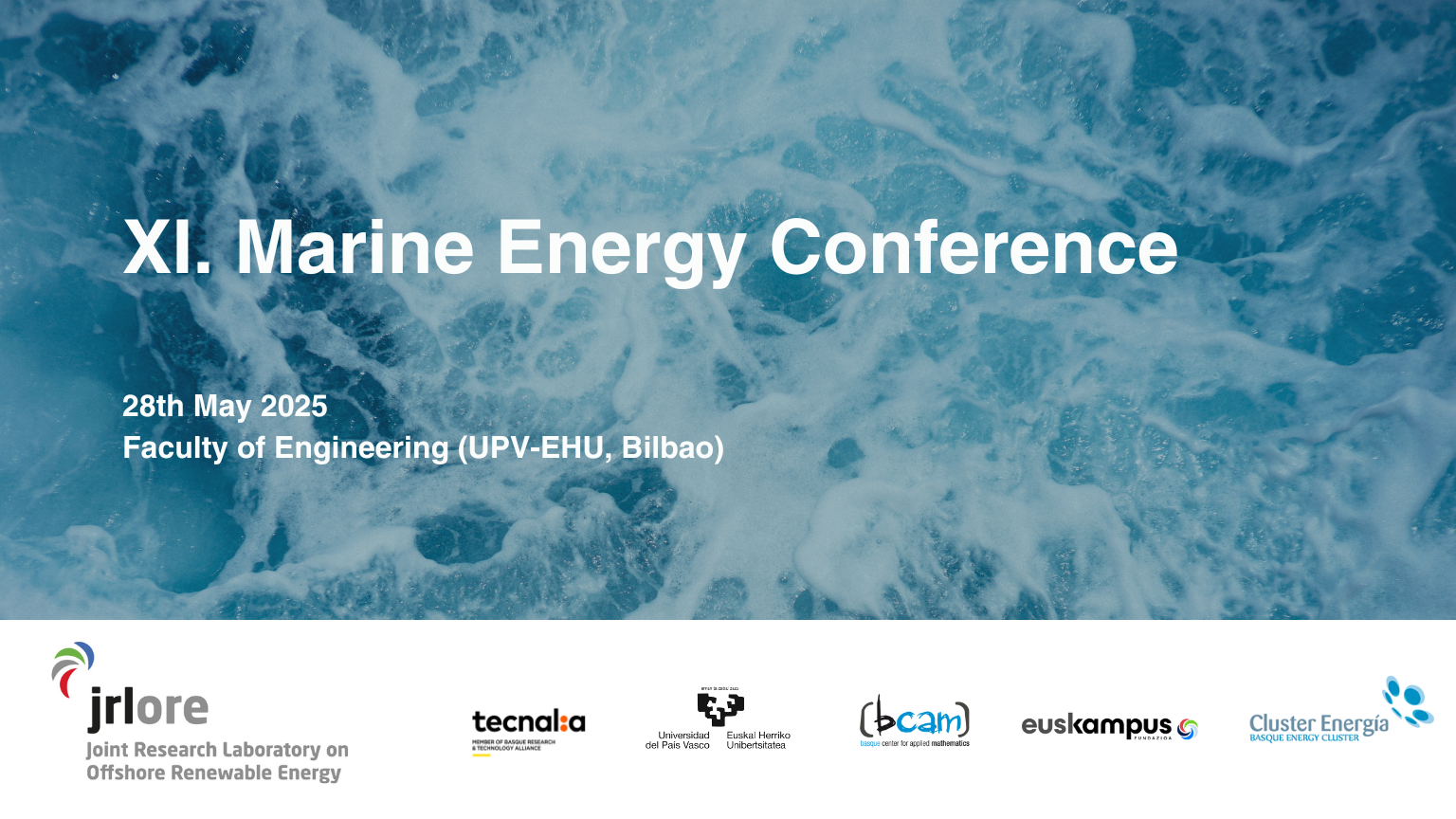 The XI Marine Energy Conference will be held in Bilbao, at the Faculty of Engineering, next May 28. The Conference is organized by JRL-ORE and Euskampus Fundazioa with the support of the University of the Basque Country UPV/EHU, Tecnalia and BCAM.